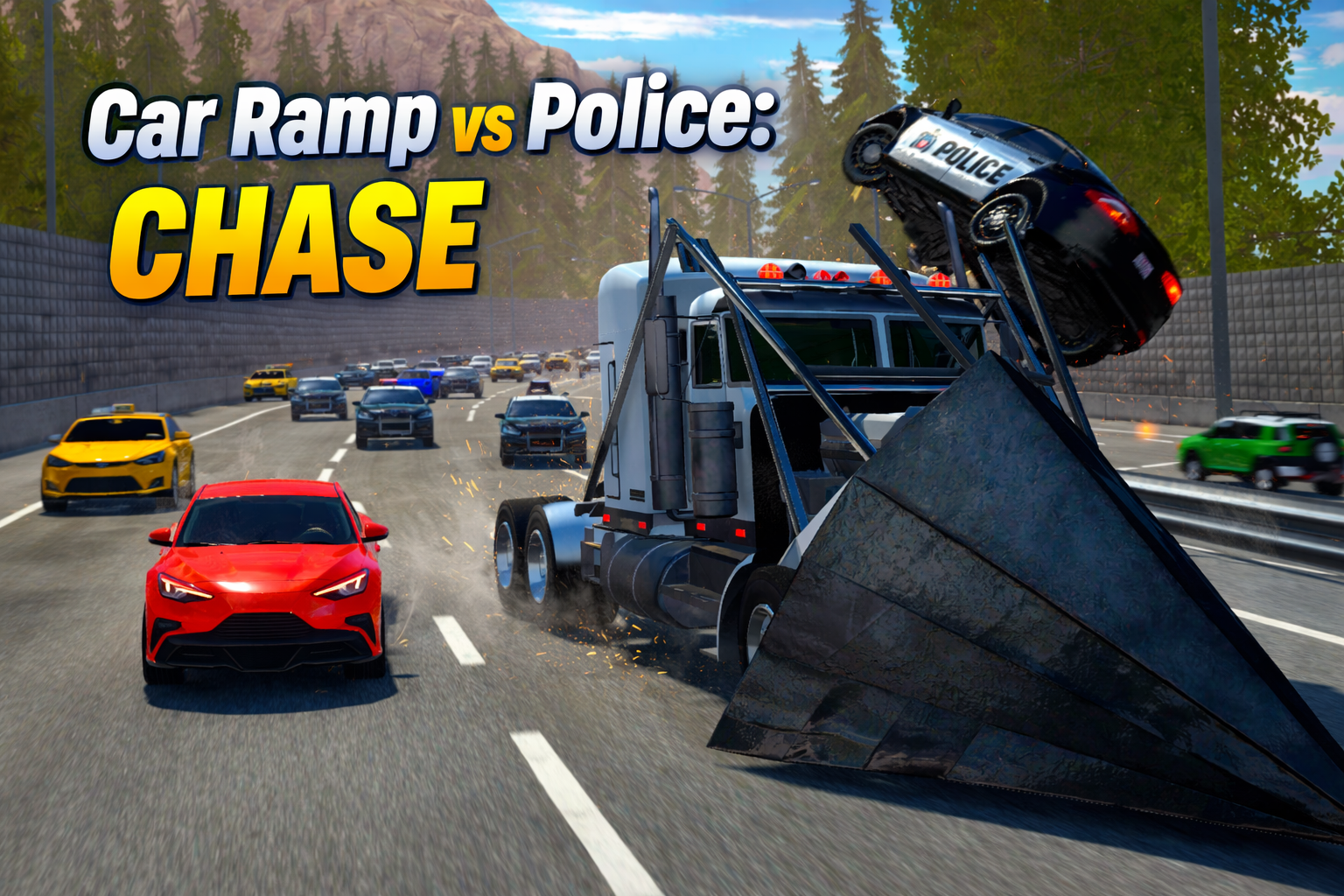Car Ramp vs Police: CHASE is a high-speed driving action game focused on chaos, skill, and explosive police pursuits. Each session drops you onto crowded highways where survival depends on sharp reflexes, smart maneuvering, and strategic destruction.